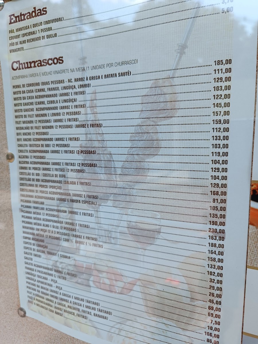The menu showcases an array of expertly grilled meats, including the popular fraldinha and costela de ripa, both praised for their tenderness and flavor. Enhance your meal with their delightful chips, a customer favorite, and don’t miss the unique eggplant dish that has charmed many visitors.